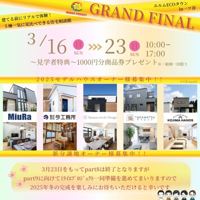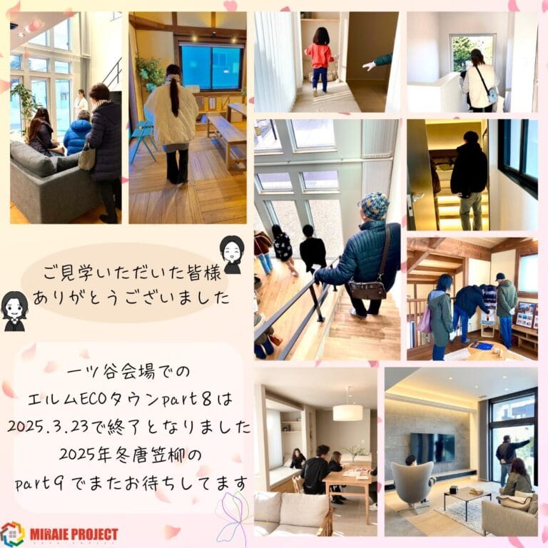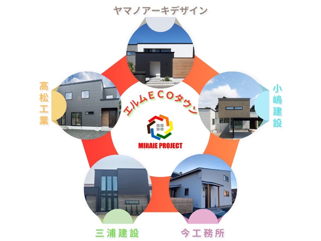 地域の特性を熟知した地元工務店が 5社合同でつくる住宅展示場「エルムエコタウン」 次回PART9は唐笠柳で準備中です。 駐車場もあり、ご家族そろって見学が可能です。