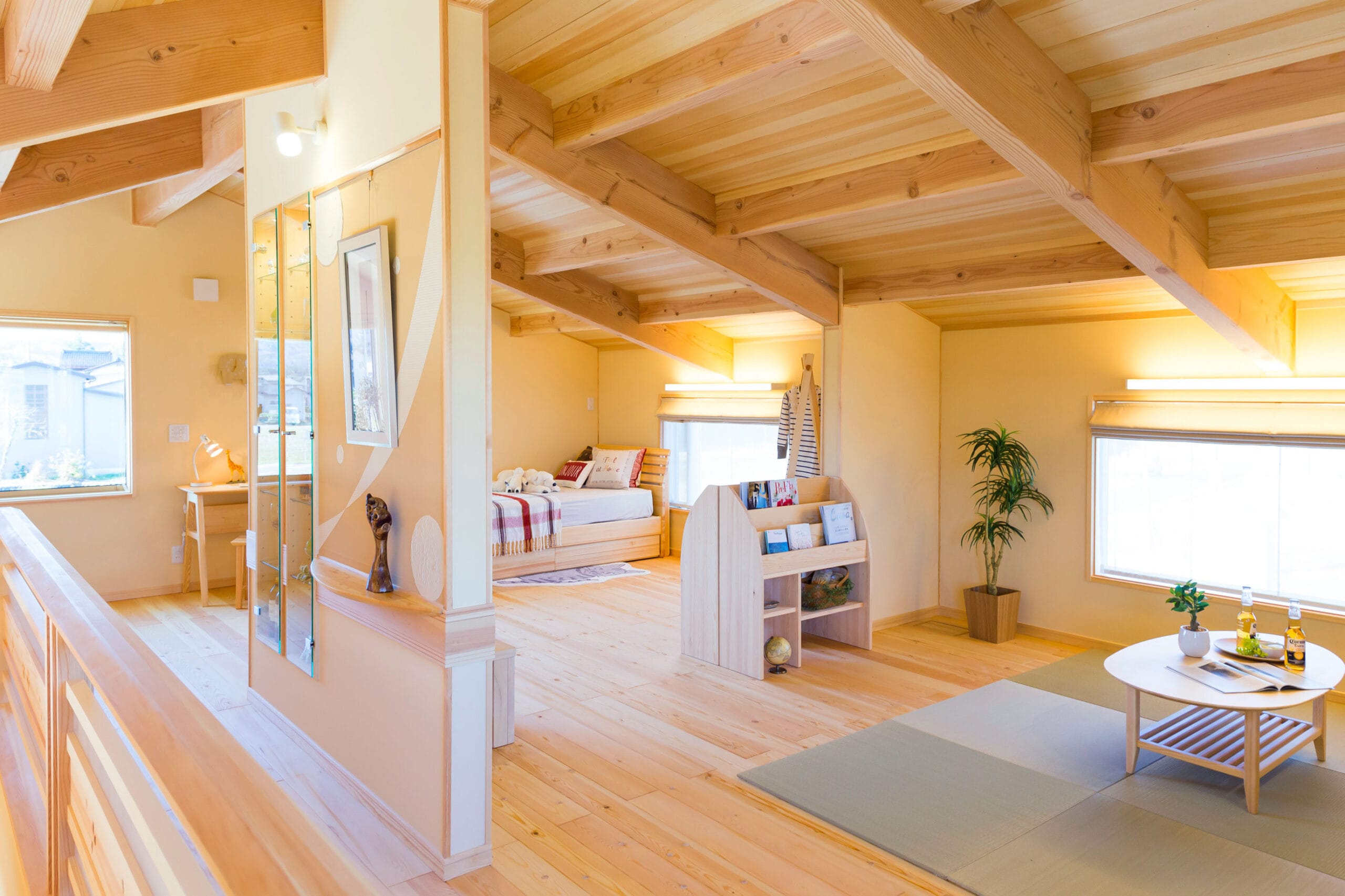 2 F 部分はフリースペースとなっており、寝室として使うも間仕切りを設けて個室にするも